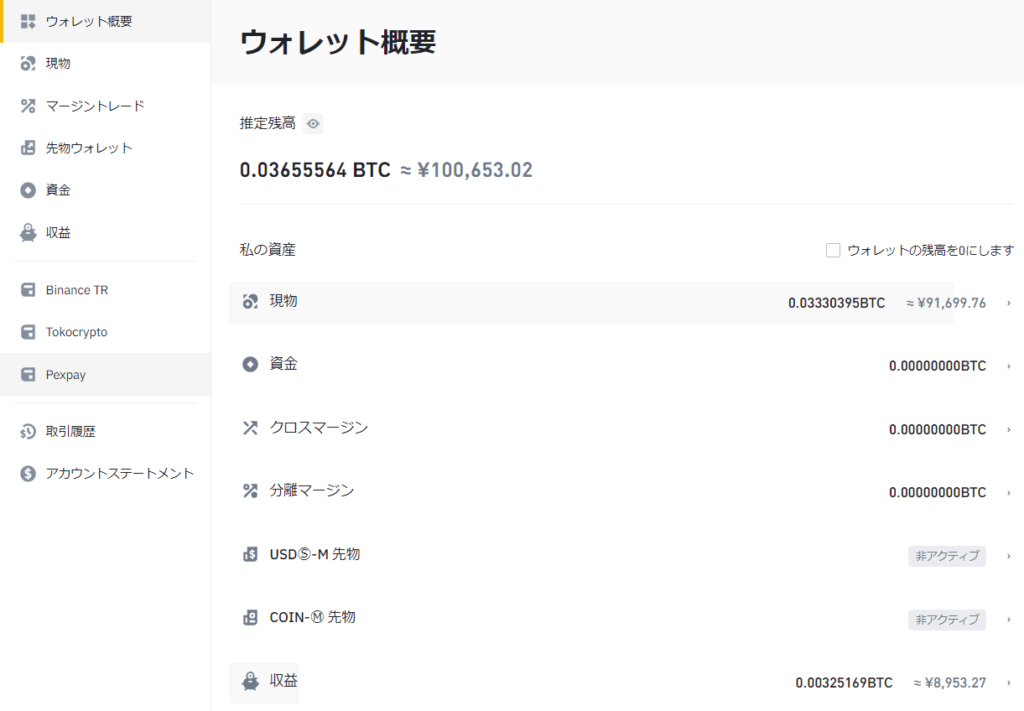 バイナンス 100,653円112,728円▲9,389円91.47