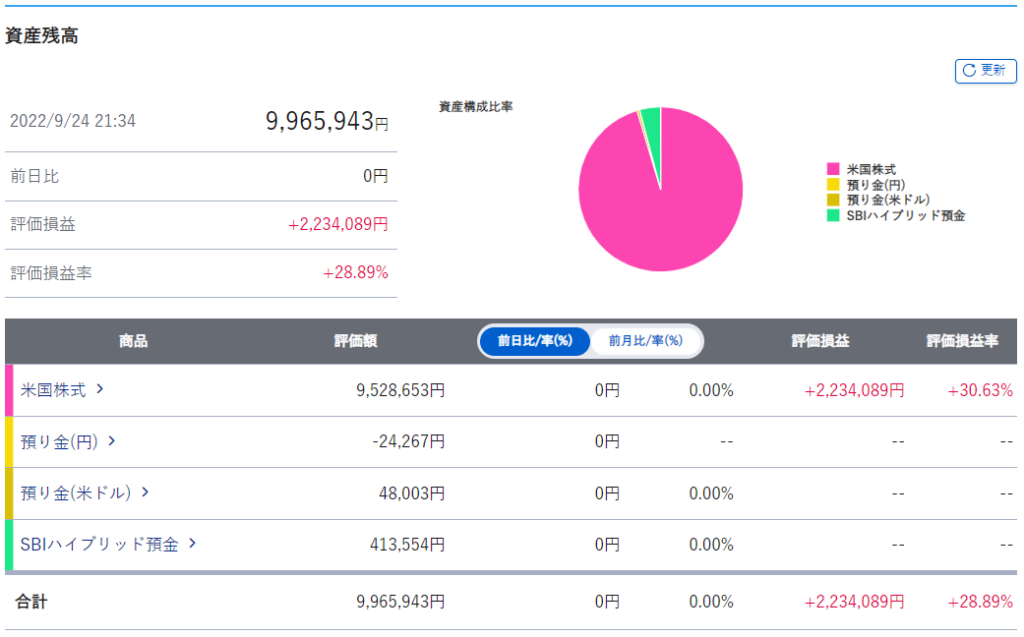 週間運用結果【~2022/9/23迄】今週の資産変動はどのような推移になったでしょうか。
